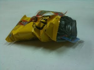 En fin, todo sucedió un buen dia en mi trabajo. Estaba sentado frente a mi computadora tratando de entender un complejo problema de programación cuando se me antojaron unas papas fritas. Comi el contenido de la bolsa sin reparar mucho en lo que estaba consumiendo, absorto en mis propios
